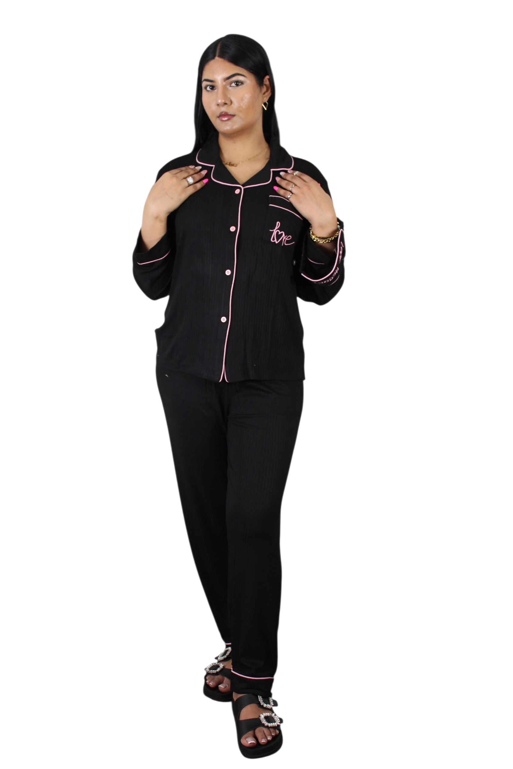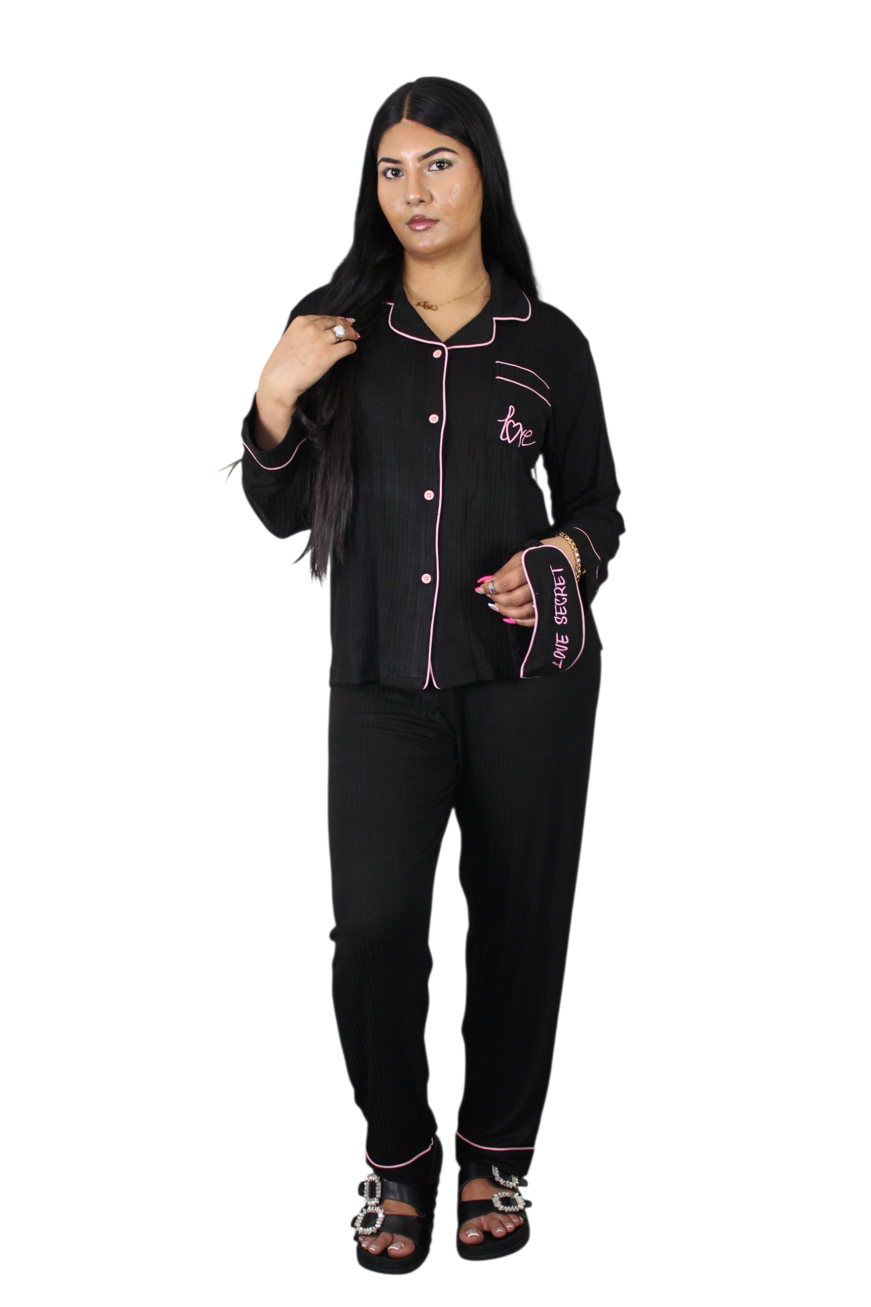 Sleepwear collection with our 3Pcs Love Triangle Pajamas, designed for ultimate comfort and style. This set features a chic triangle...