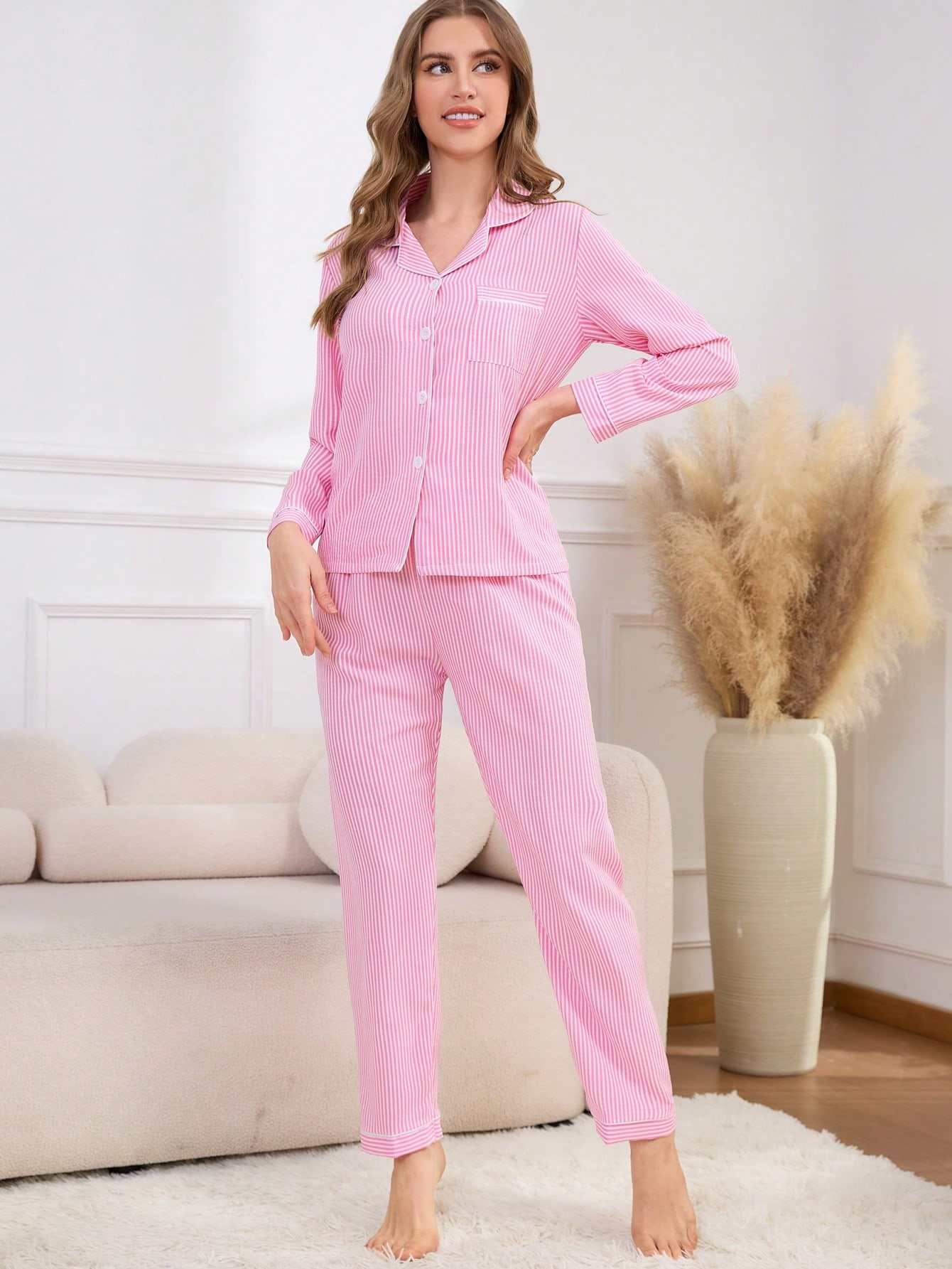 Indulge in luxury with this strip PJ's Set, designed for ultimate comfort and style. This exquisite lounge wear features a...